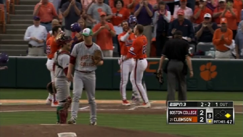 CLEMSON, S.C. (CAC) — Seth Beer and Weston Wilson both belted two-run homers and Clate Schmidt tossed 7.0 strong innings with a career-high 11 strikeouts in No. 19 Clemson’s 6-2 win over No. 22 Boston College at Doug Kingsmore Stadium on Friday night. The Tigers, who took a 1-0 lead in the series and won their fifth game in a row, improved to 14-3 overall and 3-1 in the ACC. The Eagles fell to 12-4 overall and 2-2 in ACC play.