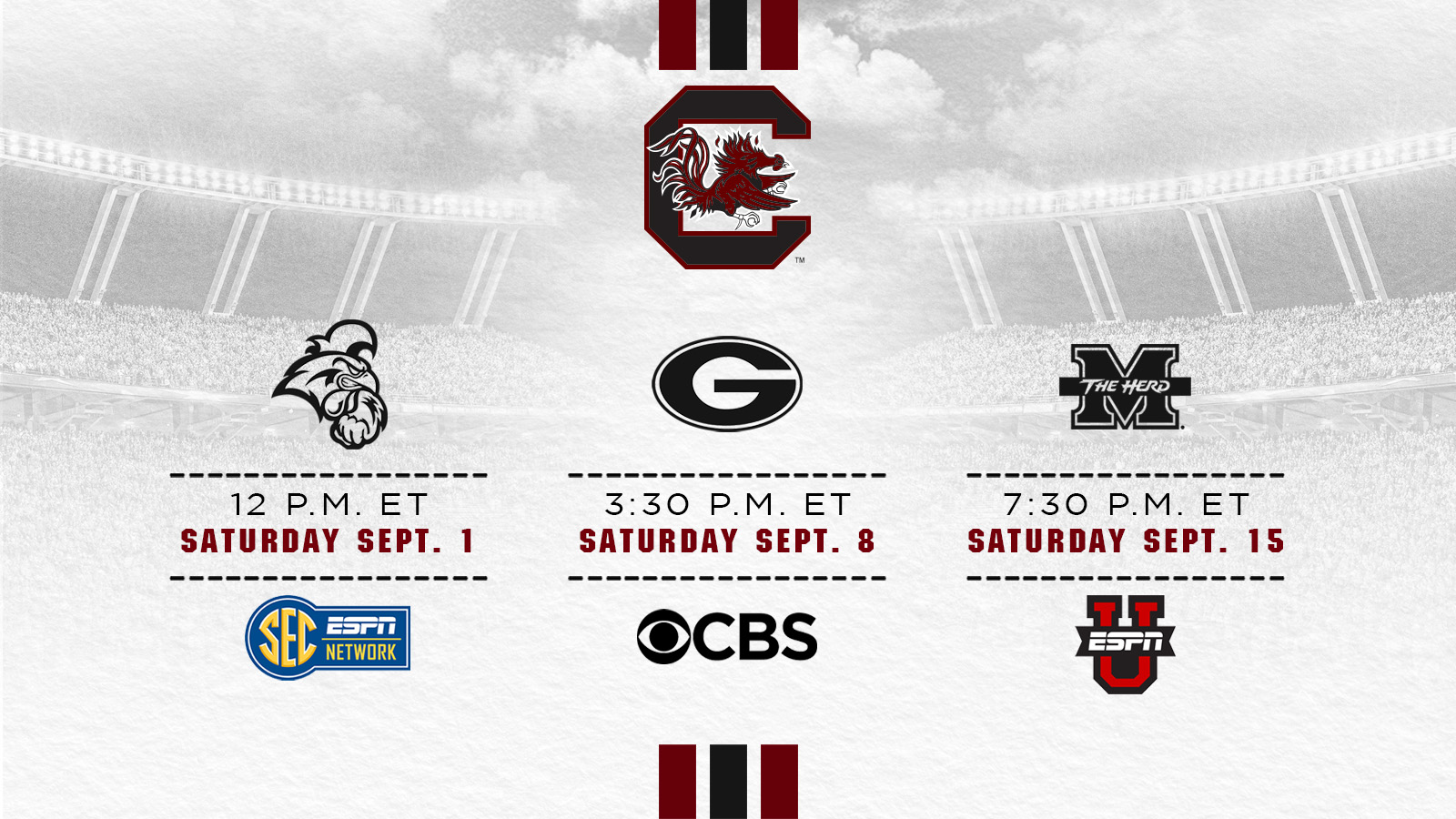 COLUMBIA, S.C. – Game times and networks have now been set for each of South Carolina’s first three football games for the 2018 season, the Southeastern Conference announced Thursday.