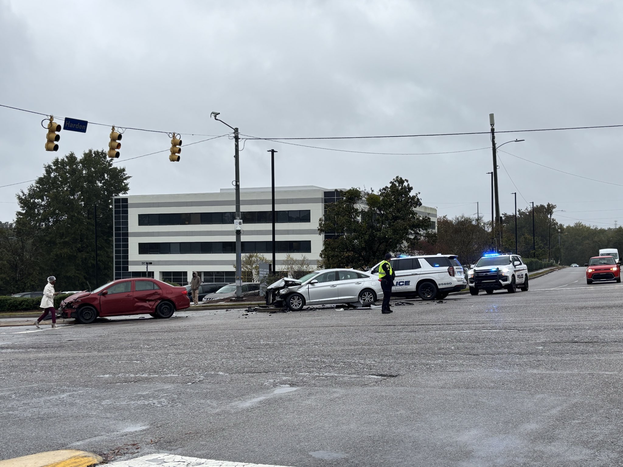 Columbia Police officers directing traffic after three-car collision