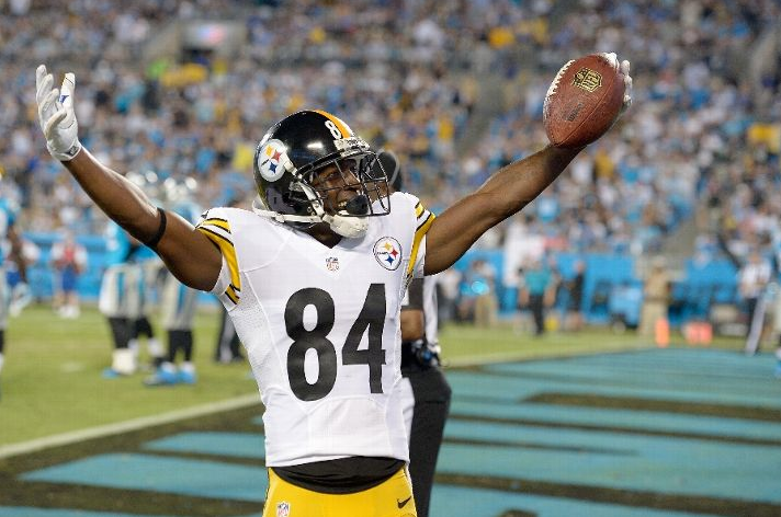 Ben Roethlisberger threw two 7-yard touchdown passes to Antonio Brown, Le’Veon Bell ran for 147 yards and the Steelers beat the Carolina Panthers 37-19 on Sunday night.
