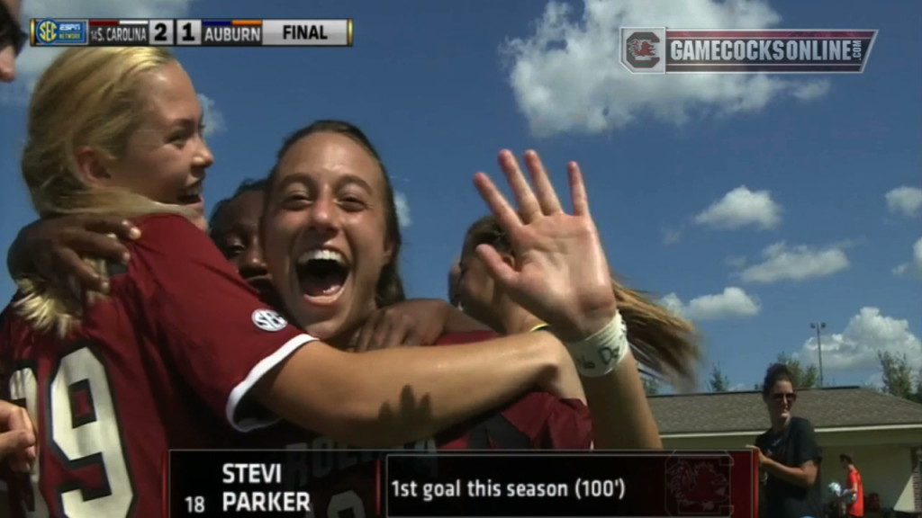 With a rocket from outside of the box in the 100th minute, junior Stevi Parker lifted No. 14 South Carolina (8-1-0, 1-0-0 SEC) to a 2-1 overtime win in its SEC opener at Auburn (6-3-0, 0-1-0 SEC) on Sunday afternoon.