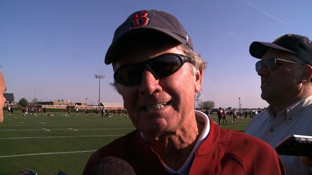 South Carolina head football coach Steve Spurrier wore a Boston Red Sox hat to the Gamecocks’ practice on Tuesday in support of former USC baseball player Jackie Bradley Jr.
