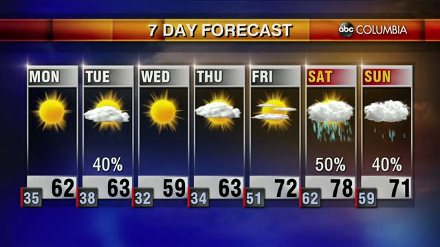 After some early showers on Saturday, the wind will pick up and the skies will clear out by afternoon. It’ll remain quiet until the next threat of showers on Tuesday. Categories: Todays Forecast Tags: ABC Columbia Forecast
