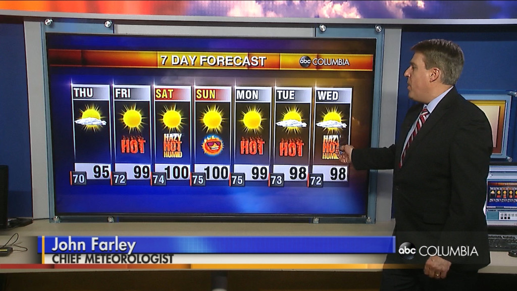 Plan on temperatures near 100 degrees starting on Friday and continuing for many days to come. Stay cool! Categories: Todays Forecast Tags: ABC Columbia Forecast