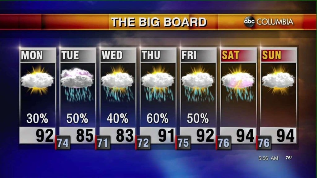 More summer-like weather for your weekend. Categories: Todays Forecast Tags: ABC Columbia Forecast