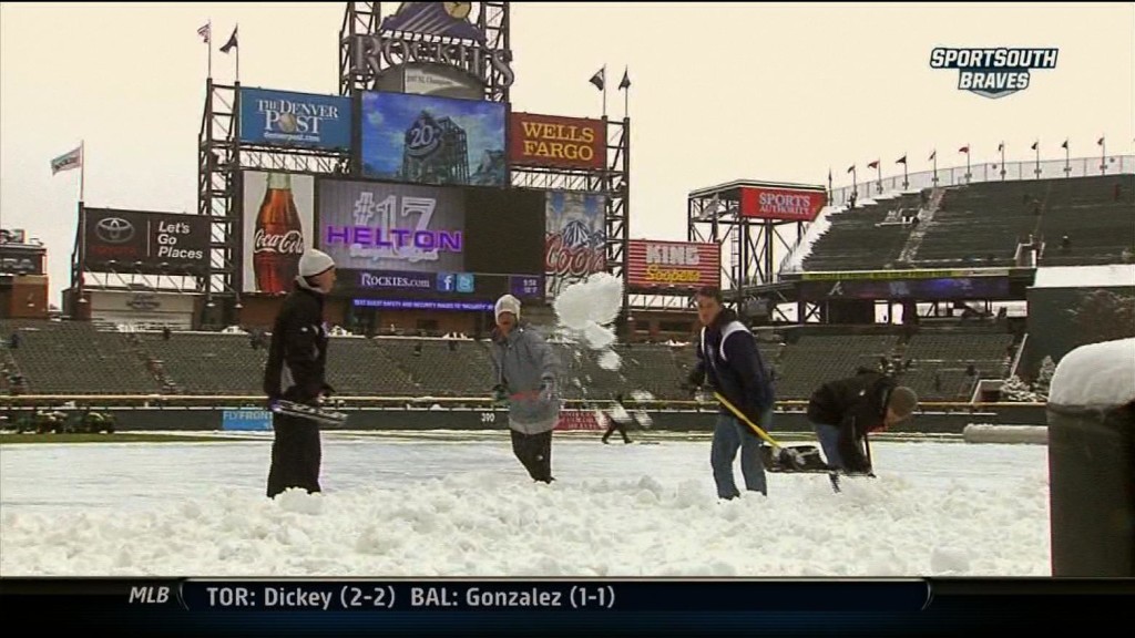 Starting a day-night doubleheader that opened with a 23-degree temperature, Justin Upton hit his major league-leading 10th home run, Dan Uggla and rookie Evan Gattis also connected and the Braves beat the Colorado Rockies 4-3 Tuesday.