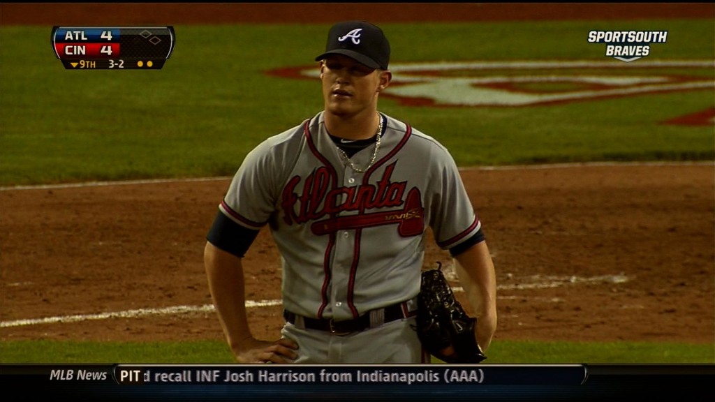 Chipper Jones hit a three-run homer off Jonathan Papelbon with two outs in the ninth inning, capping a five-run rally that sent the Atlanta Braves over the Philadelphia Phillies 8-7 on Sunday.
