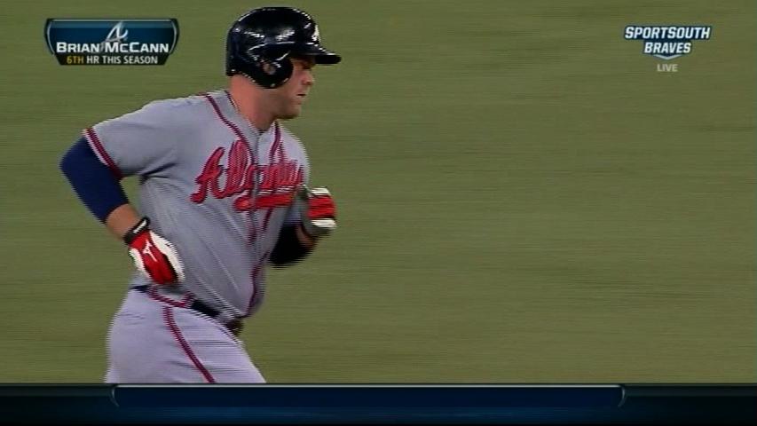 Brian McCann hit an early grand slam and the Atlanta Braves got solo home runs from Chris Johnson and Jordan Schafer in a 7-4 victory over the Milwaukee Brewers on Sunday.